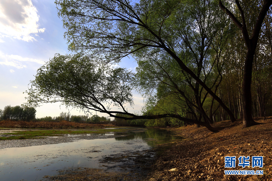 淋河好女塔水岸的原生態旱柳成為一道獨特的生態景觀。新華網發(李江 攝)