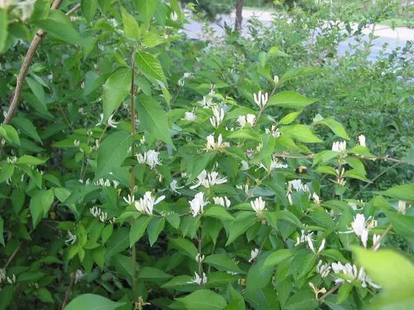 金銀忍冬又叫金銀木,它是一種落葉灌木,這種植物的枝條比較發達,繁殖能力比較強,它的葉片是紙質狀態,葉片的形狀為卵圓形,開花一般為白色和黃色,果實為暗紅色,在每年的5~6月開花,8~10月結果。
