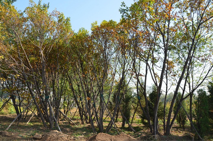 1. 叢生蒙古櫟:叢生蒙古櫟樹干堅硬直立,分枝繁茂,葉片較小。其樹冠呈圓頂狀,形態小巧、精致,有一種垂頭的趨勢。樹冠和根系分布比較勻稱,樹體整體性較強。